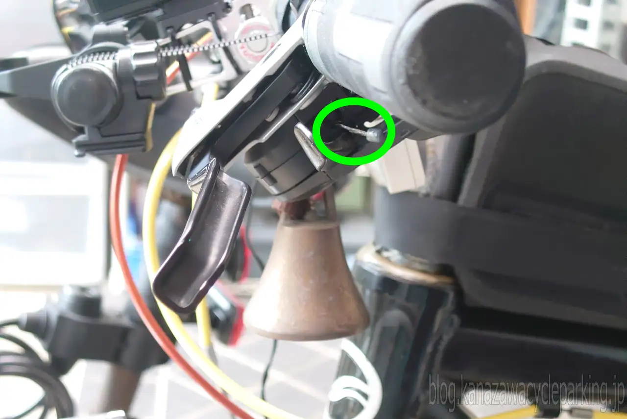 ある程度ワイヤーの張り調整が出来たら、フロント変速レバーのほうでワイヤーの張りを調整しました。